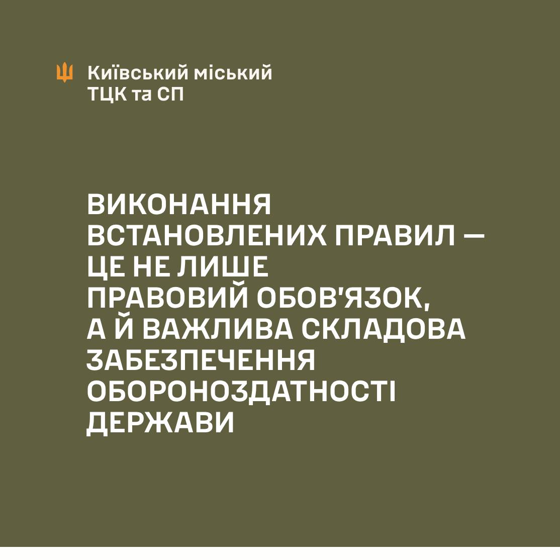 ТЦК та СП закликають громадян до відповідального ставлення та необхідності дотримання вимог мобілізаційного законодавства України. Виконання встановлених правил — це не лише правовий обов’язок, а й важлива складова забезпечення обороноздатності держави.