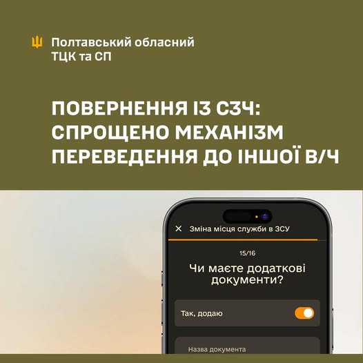 Генеральний штаб Збройних Сил України повідомив про впровадження оновленого механізму переведення військовослужбовців, який має зробити цей процес швидшим, прозорішим та менш бюрократизованим. Очікується, що нововведення також позитивно вплинуть на ситуацію з поверненням військових після самовільного залишення частини (СЗЧ).