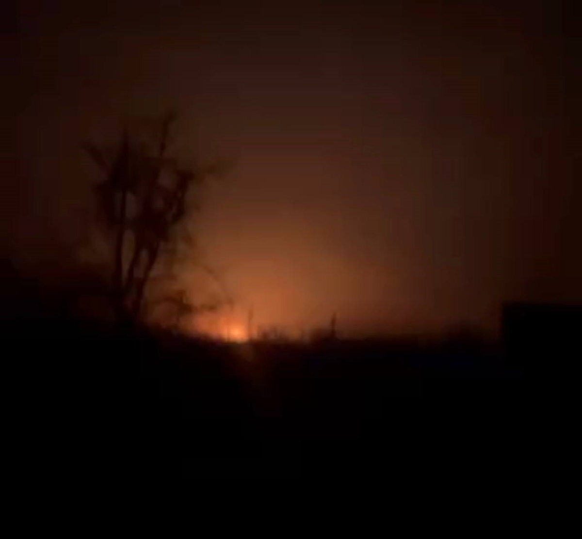 За повідомленням місцевих пабліків, над містом чути вибух за вибухом і видно яскраві спалахи в небі.