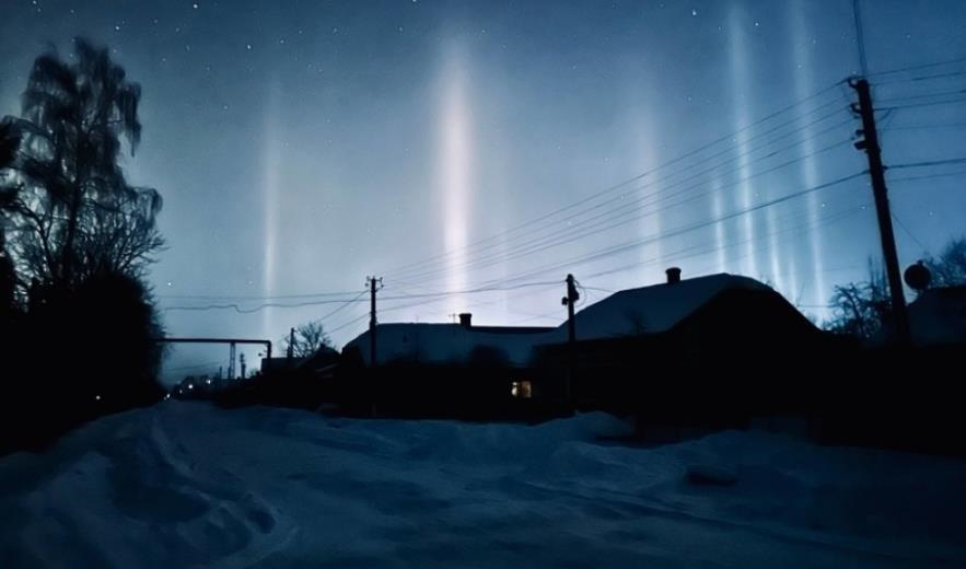 За його словами, через морозяну погоду на вулиці в атмосфері є дрібнесенькі кристалики льоду. Коли на них падає світло (до прикладу вуличне освітлення), вони відбивають це світло, як дзеркальця. І в тому місці, де цей потік світла проходить, ми бачимо це рідкісне явище, такий “світловий стовп”.
